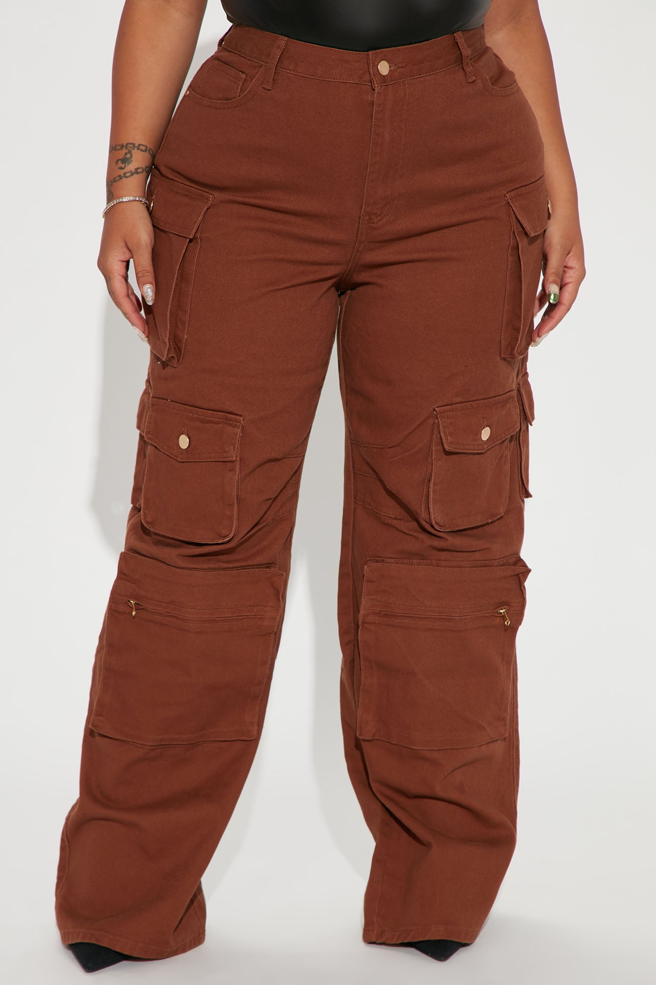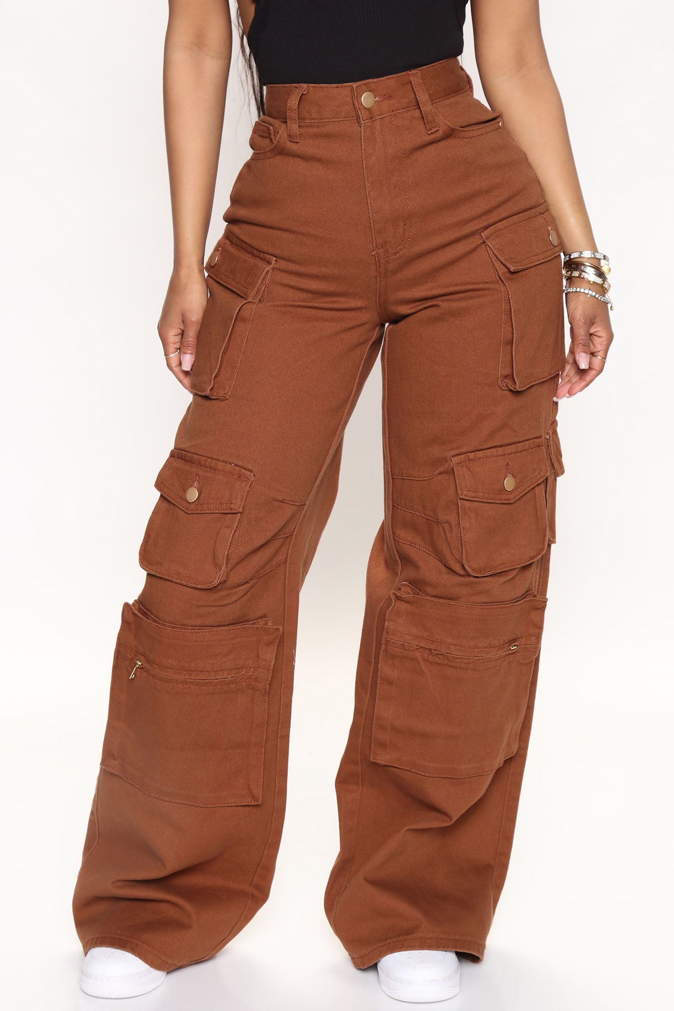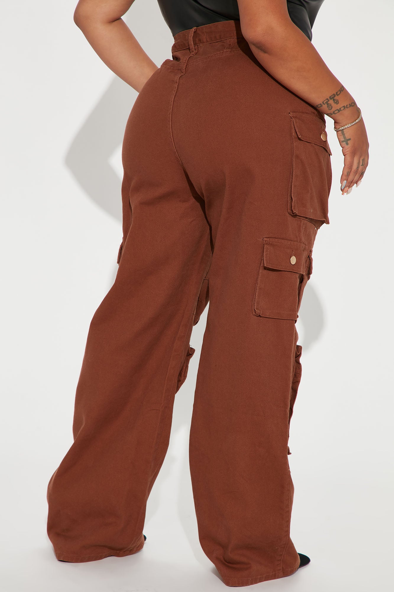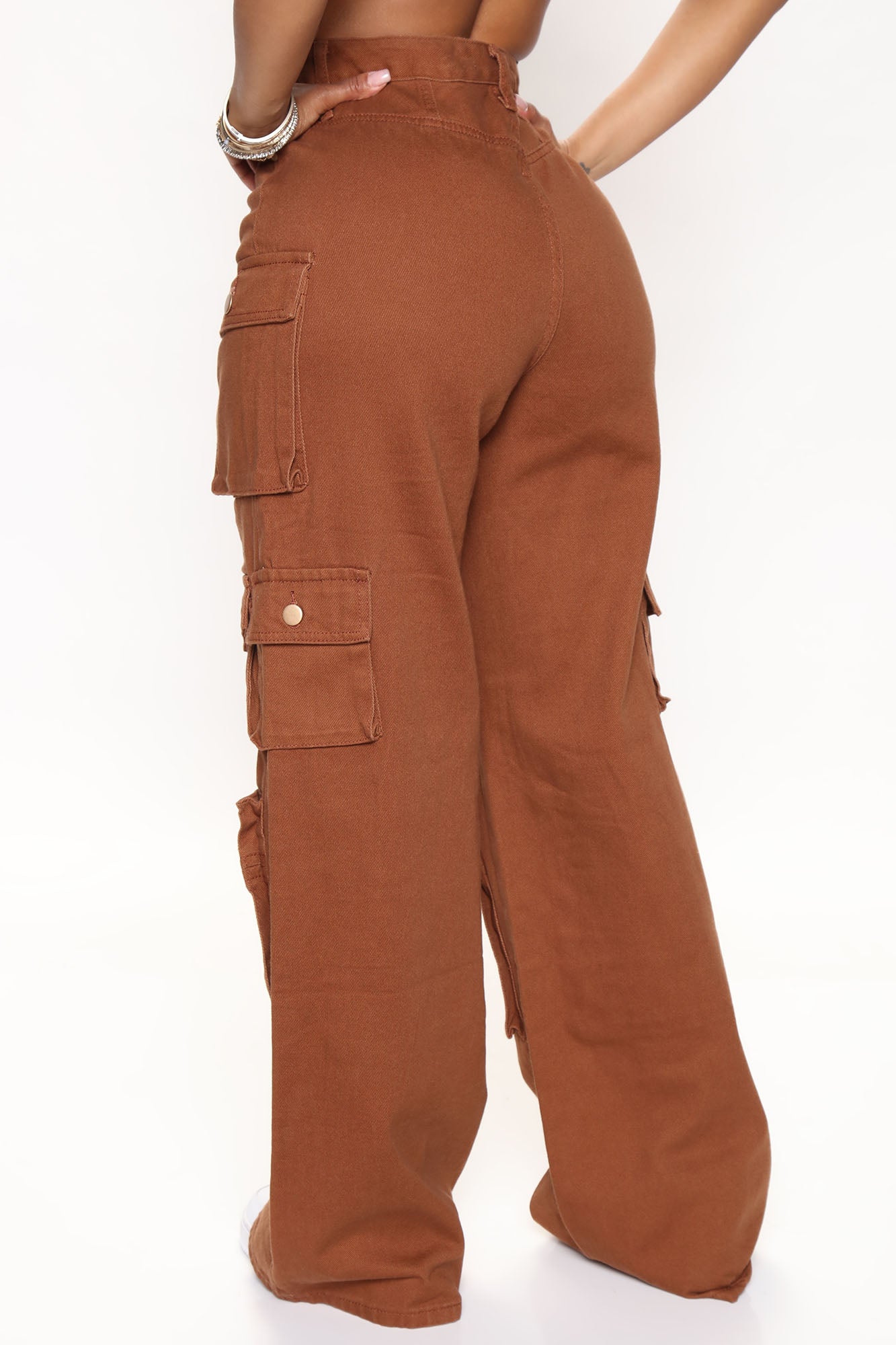 Lily High Rise Cargo Jeans - Brown