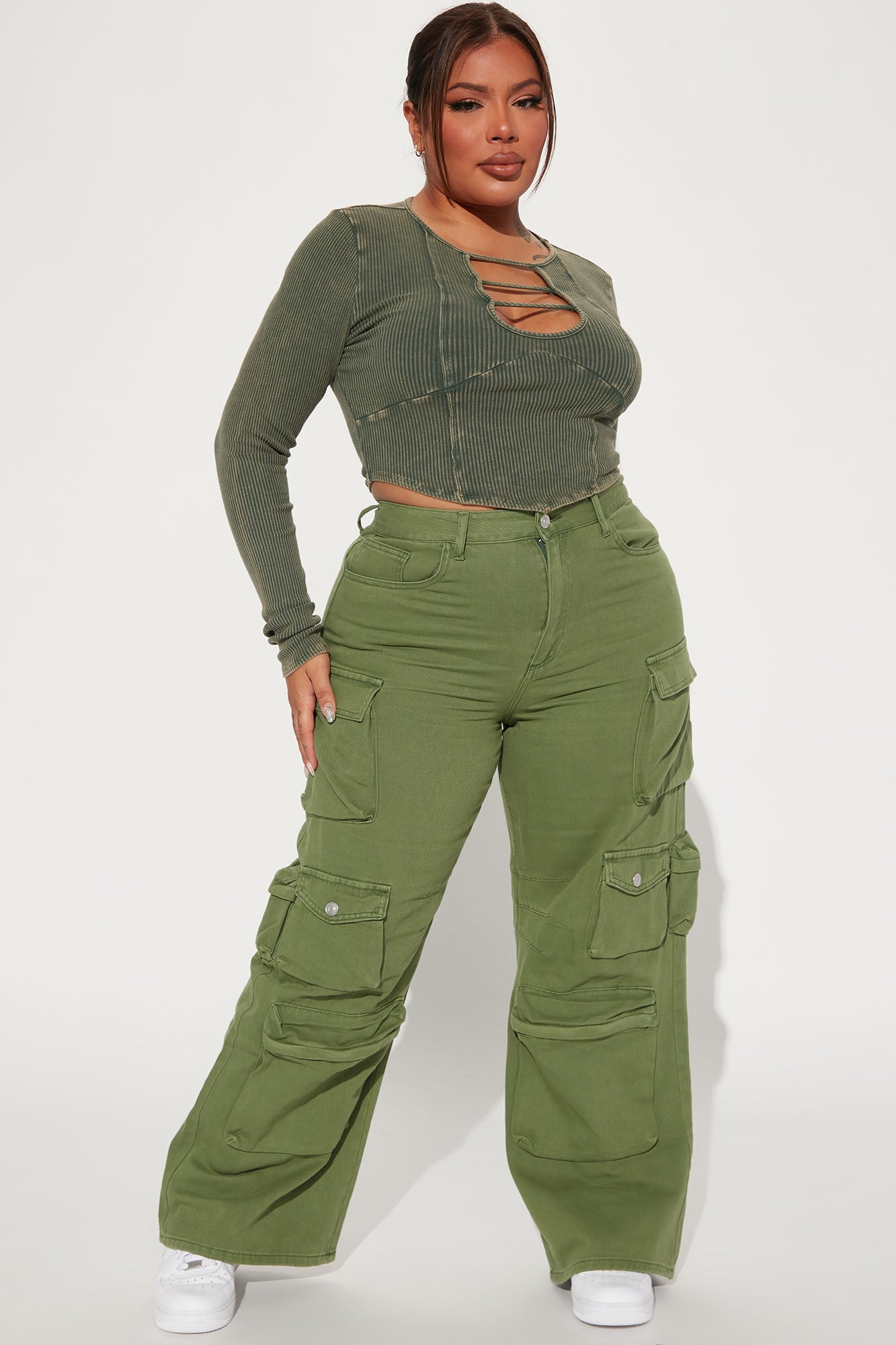 Melrose High Rise Cargo Jean - Olive