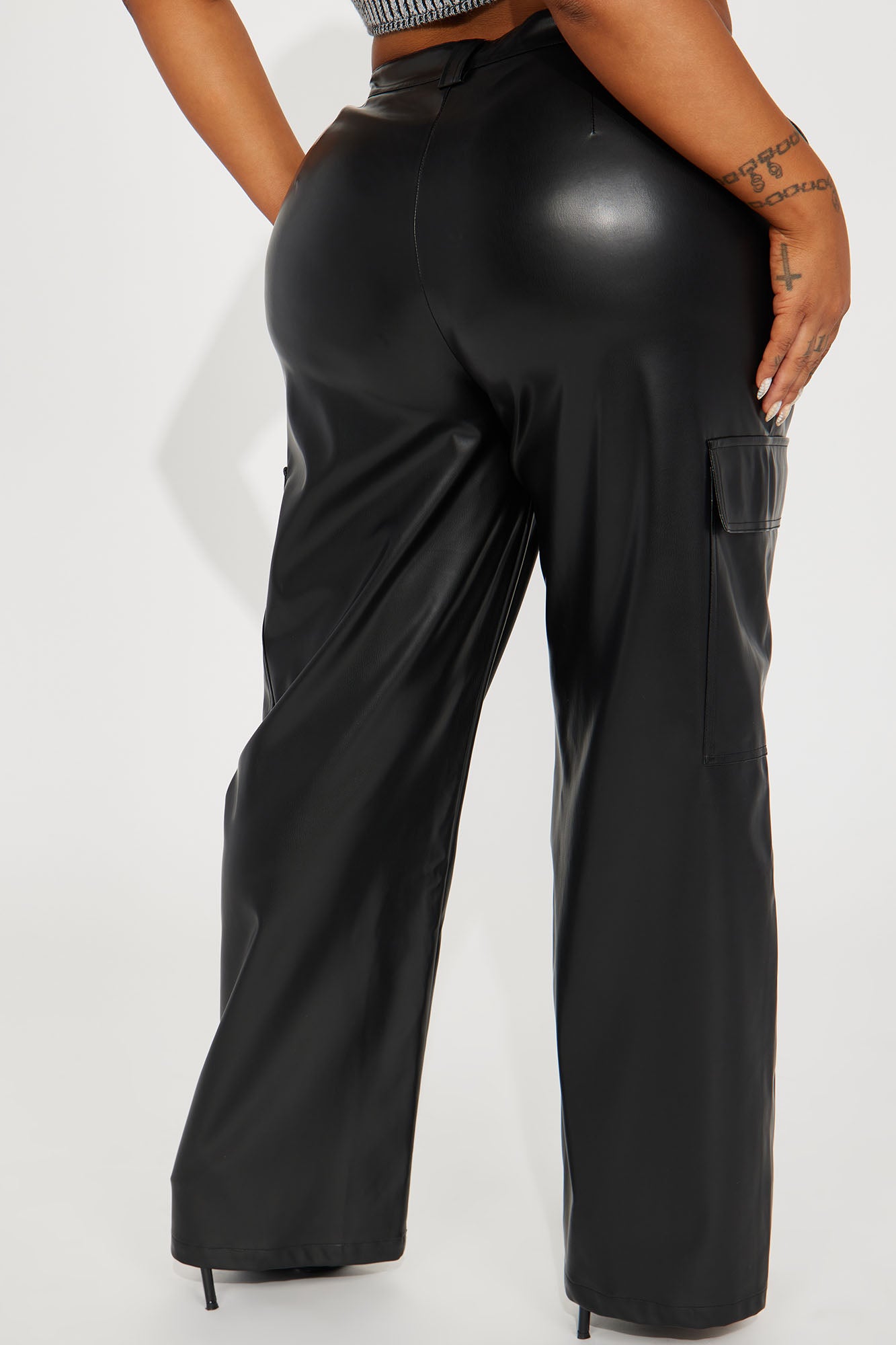 Toni Faux Leather Cargo Pant - Black